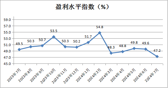 盈利水平指数为47.2%,较上月下降2.4个百分点,表明商品经营类企业对7月份盈利水平增长的预期明显下降。