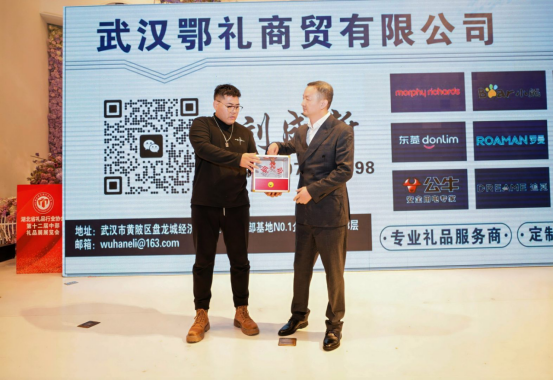 参展商代表广州风锐箱包有限公司向湖北省礼品行业协会赠送了锦旗,感谢协会在资源对接、市场开拓等方面为会员企业的切实“赋能”与大力支持。