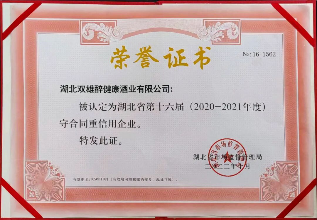 石花双雄醉公司自成立以来,一直秉承着诚信为本的经营原则,规范自身经营,重视诚信建设,先后获得襄阳市守合同重信用企业、湖北省守合同重信用企业等荣誉称号,赢得业界的高度赞誉。未来,石花双雄醉将始终坚持以诚信为先,牢筑信用底线,严格遵守国家法律法规和行业规范,强化诚信合规体系建设,并全力打造讲诚信、守诚信、重诚信的品牌理念,为推动中国健康白酒行业高质量发展提供重要支撑。
