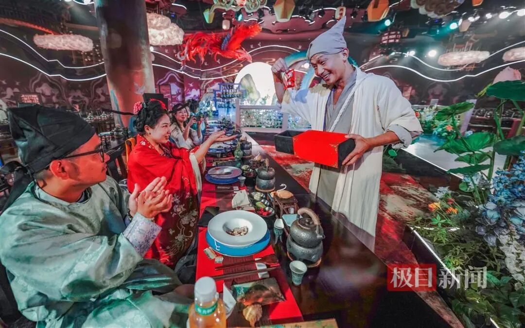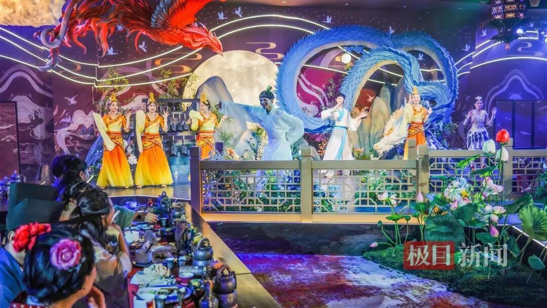 在同一消费空间里,可以一边欣赏歌舞、一边品尝美食,是不是视觉与味觉的双重体验?近日,湖北首家“餐饮+剧场”模式的酒店开始试营业,店里每一位食客都换上了汉服和古风装扮,在古色古香的剧场里一边欣赏楚文化表演,一边品尝湖北地道美食。