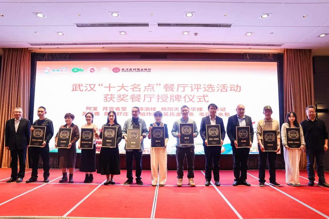 民以食为天,广袤的黑土地,孕育了颗颗饱满的金色麦穗,升腾着中国14亿人口的人间烟火,此次“汉派小吃名店”奖牌的色调设计寓意于此;湖北物华天宝人杰地灵,武汉人热情似火却又内心细致,正如图形中方中有圆、圆中带方,和谐统一,与汉派小吃一样,包罗周边各种口味又生出不一样的汉派特色,自成体系,让人流连忘返,回味悠长。这些奖牌,是对武汉餐饮小吃行业优秀餐厅的褒奖,它将吸引更多的食客、游客来品尝汉派名点,体验名店优质服务,感受武汉美食的独特魅力。武汉“十大名点”餐厅评选活动于7月启动,超过2000家武汉名点餐饮企业、小吃店积极参与,筛选了600多家候选名点餐厅门店进入投票打分环节,广大市民、游客通过H5小程序参与投票,共收到644万余张投票,总浏览量高达755万人次。进一步传播了武汉“十大名点”美食文化,提升了汉派餐饮品牌知名度。颁奖仪式上,为本次评选活动的评审团专家们颁发了“文化顾问”聘书,评审团召集人、楚菜文化推广大使姬图米说,会继续担当起武汉美食文化的传播者和守护者的责任。经湖北省武汉市尚信公证处全程监督、公证,金亮先生获得了本次活动的投票参与大奖——价值万元的《黑神话:悟空》游戏套装,并被授予“汉派小吃名店首席推荐官”称号,他表示今后会不遗余力地推广汉派小吃名店,当好推荐官。聚集商气人气,提振消费信心,推进产业发展,武汉市老字号协会负责人介绍,武汉“十大名点”餐厅评选活动得到了武汉商业总会、长江日报报业集团、武汉广播电视台(集团)、美团、大众点评、抖音、饿了么、得意生活以及武汉农村商业银行等机构、媒体、平台及企业的大力支持,这一活动将在武汉市商务局的指导下,每两年举办一次,对于授牌餐厅,也欢迎广大市民、游客进行监督,发现问题可通过武汉市老字号协会邮箱3858068705@qq.com进行投诉、反映,共同提升武汉名点餐厅的品质与服务水平。武汉“十大名点”餐厅评选“汉派小吃名店”获奖餐厅名单